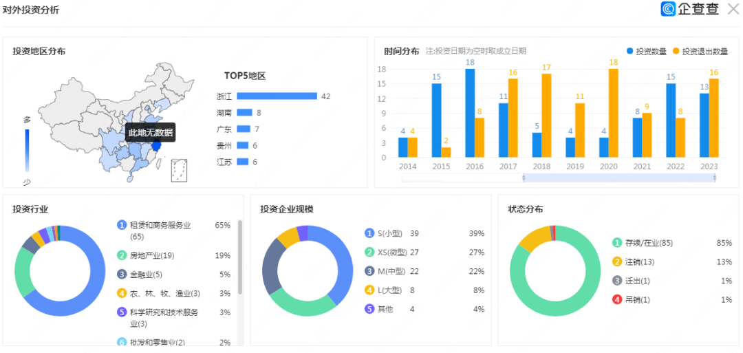 但在房地產行業一路奔襲的2015年前後,萬向信託的投資風向也隨之扭轉戴奈米克官網。企查查數據顯示,公司對外投資的100家企業中,租賃和商業服務業、房地產業佔比前兩位,達到84%。2022年財報顯示,分布于這兩個行業的信託資產金額達到585.6億元,佔比超過6成。